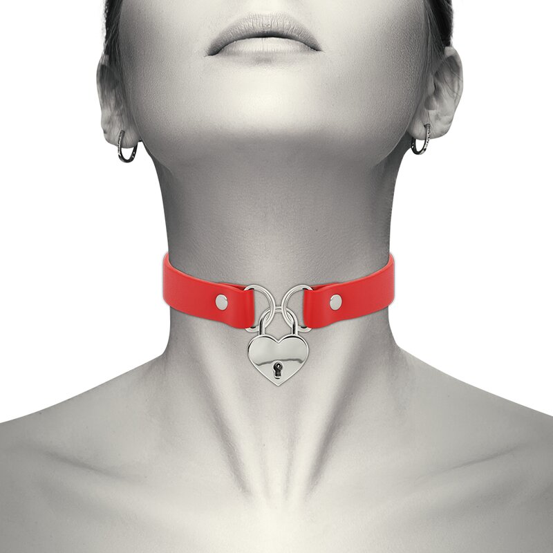 Coquette Chic Desire Collar Cuero Vegano Rojo Accesorio Corazón Con Llave Envío discreto a España