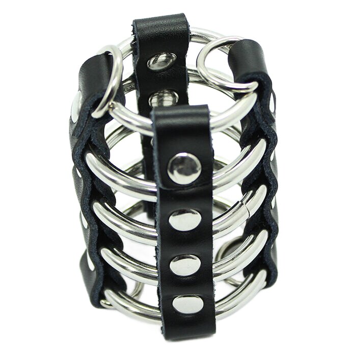 Ohmama Fetish: Jaula Pene con Anillas Metálicas y Correas de Piel